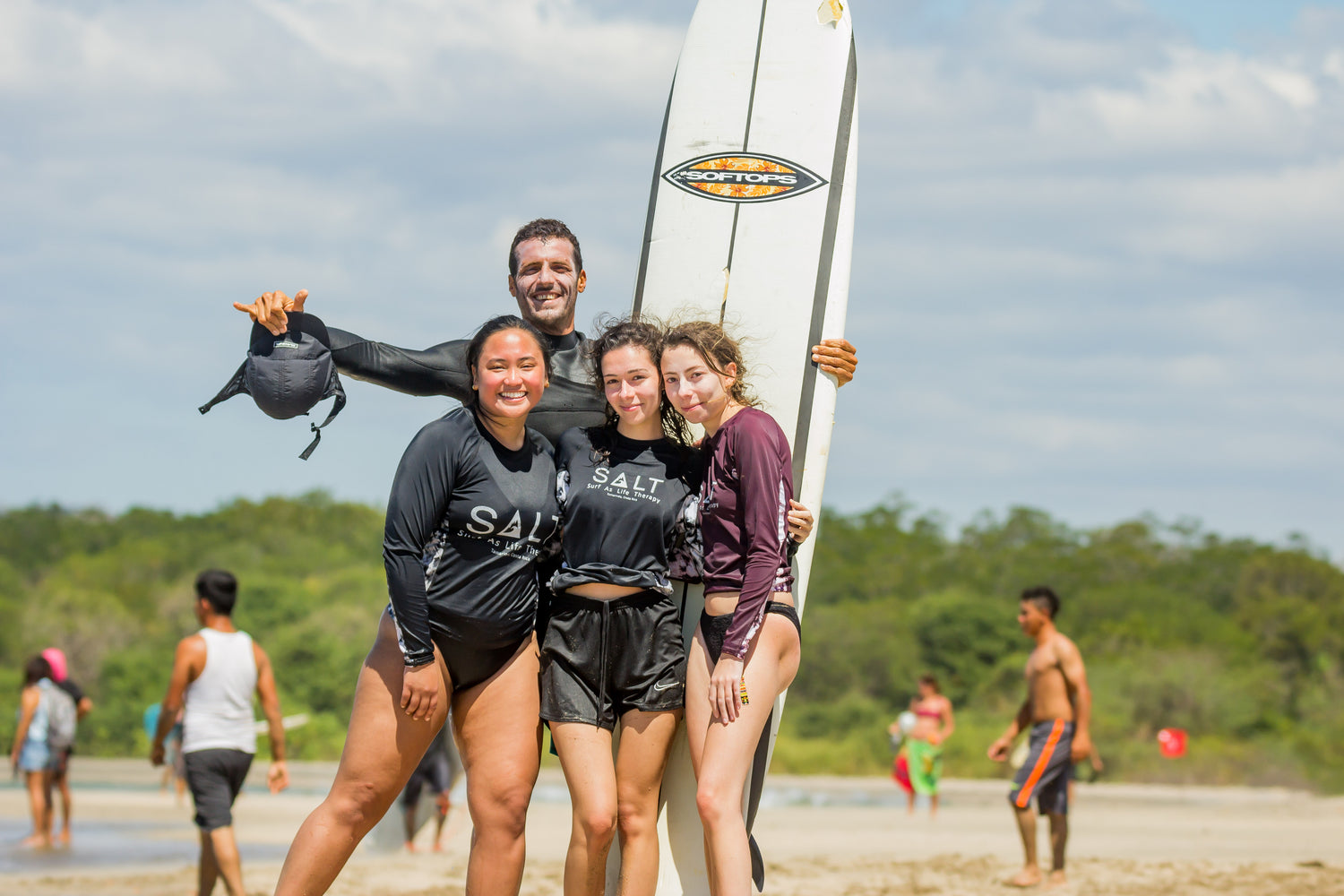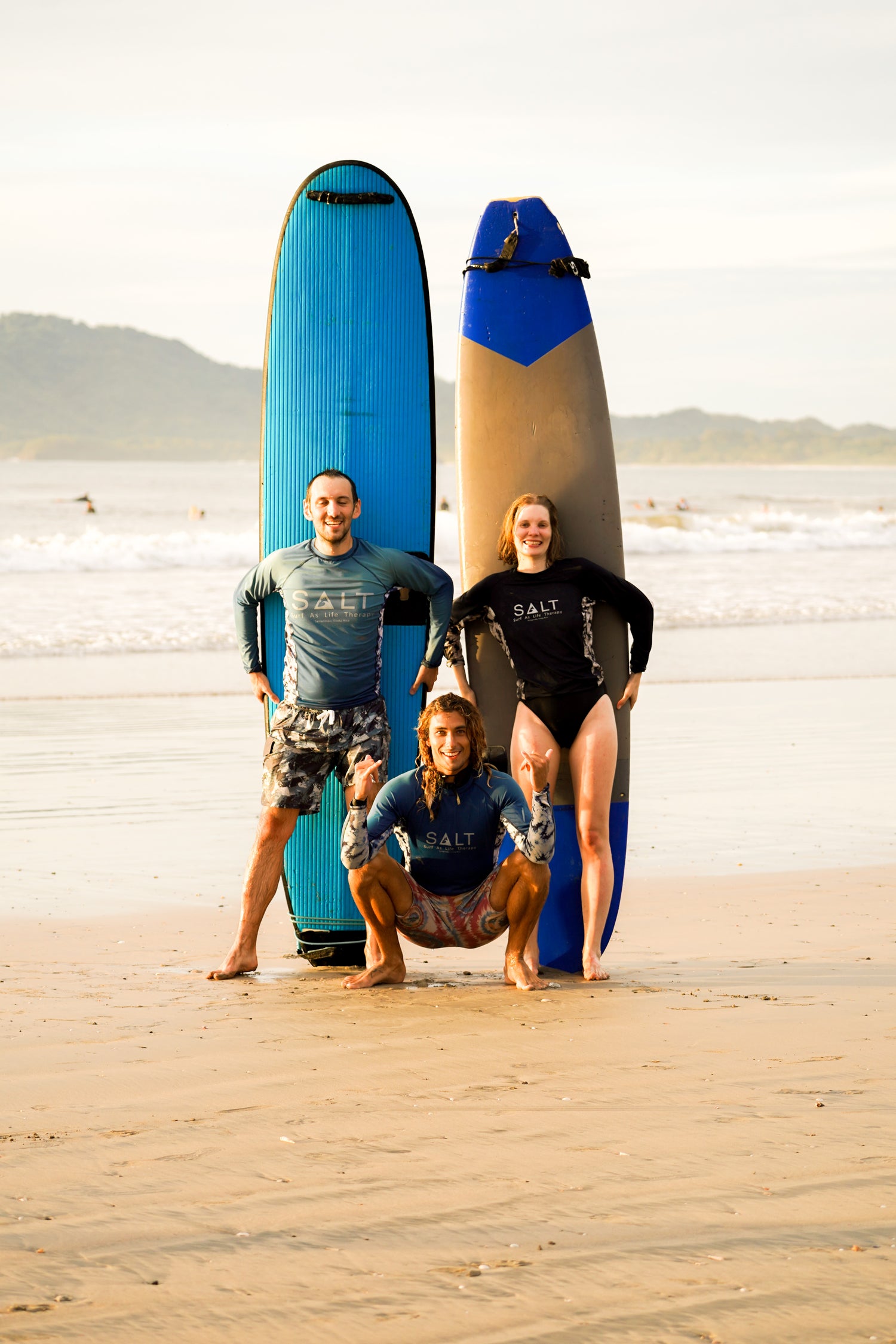 Diseñamos y confeccionamos rashguards masculinos, femenino e infantiles para SALT Surf School usando el mejor material con proteccion UPF50+ para que sus clientes tengan una experiencia inolvidable en las playas de Tamarindo